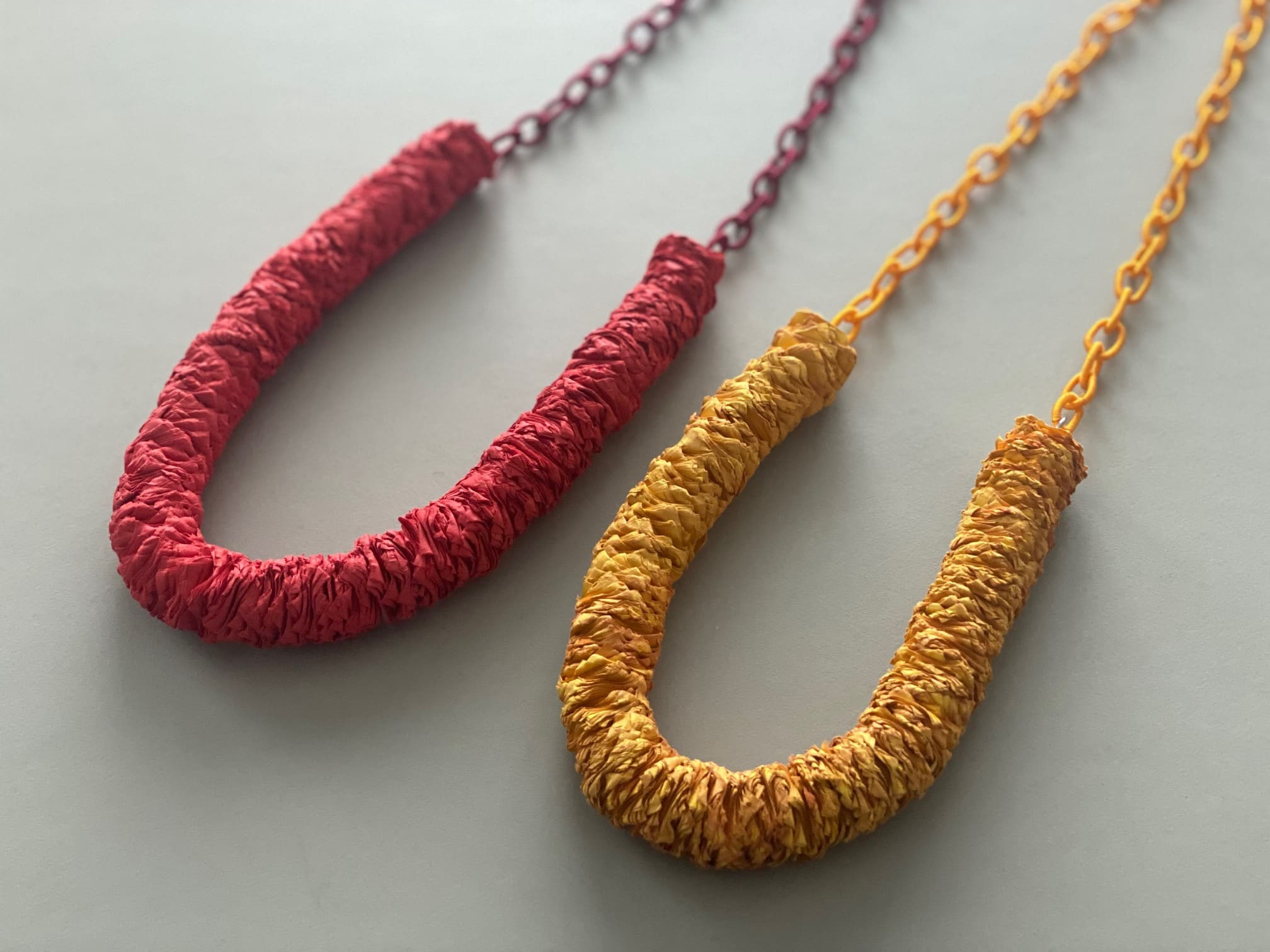 Die Objekte und Ketten bezaubern in ihrer haptischen Textur, durch ihr Gewicht und der noch formbaren Stabilität.